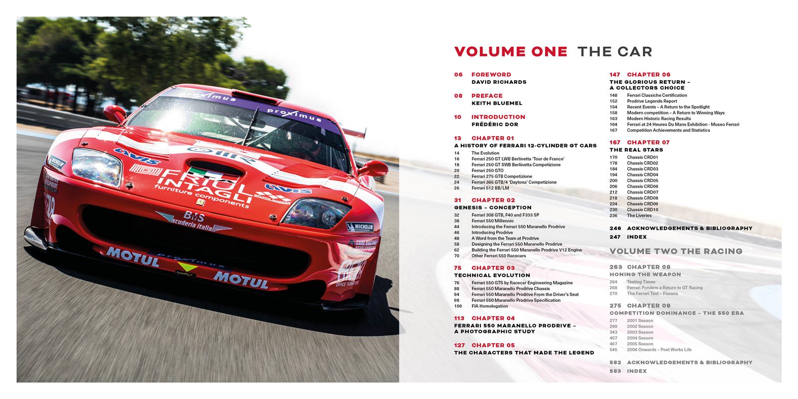 Autor ist der renommierte Ferrari-Historiker Keith Bluemel. Seine Quellen waren jene Schlüsselfiguren des Prodrive-Programms Ferrari 550 Maranello, die entscheidend für den Erfolg des Renners gearbeitet haben.